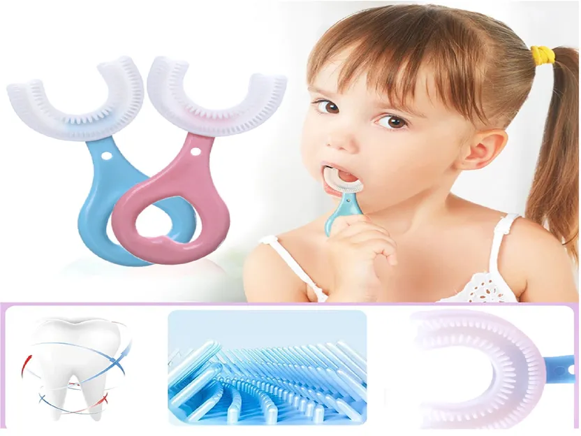 【Healthier Care】U-shaped brush head design, 360 °Clean your baby's teeth. It's easier for baby to clean teeth. It can clean teeth from all angles and make oral cavity healthier.